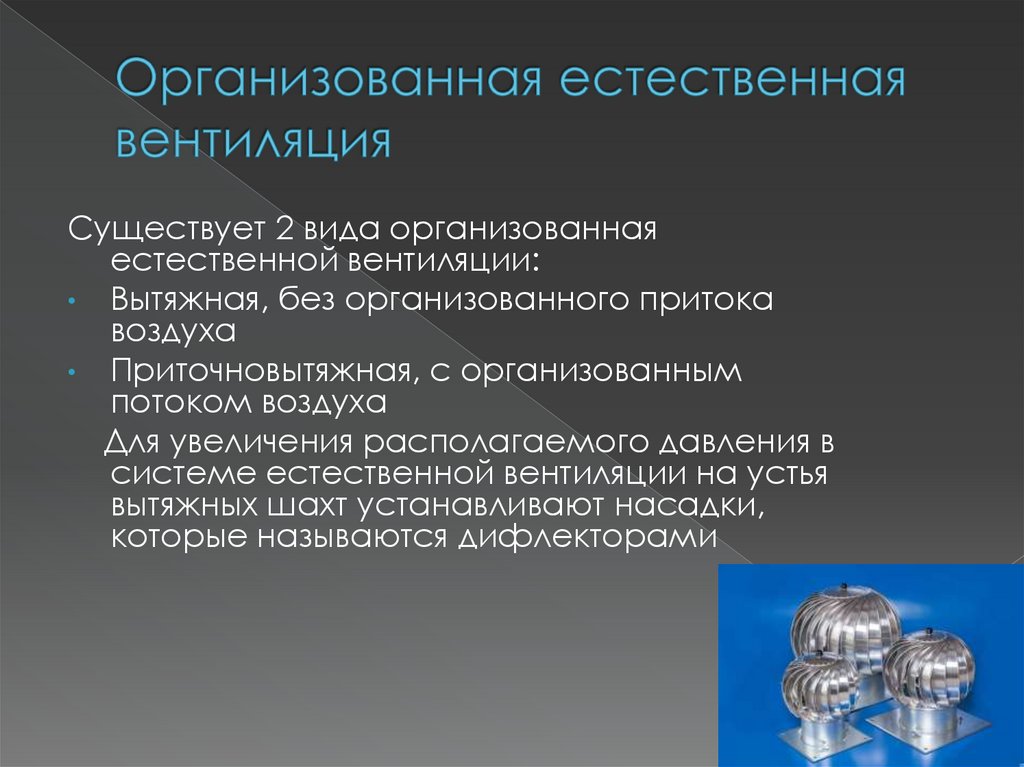 Существует 2 вида организованнаяестественной вентиляции: