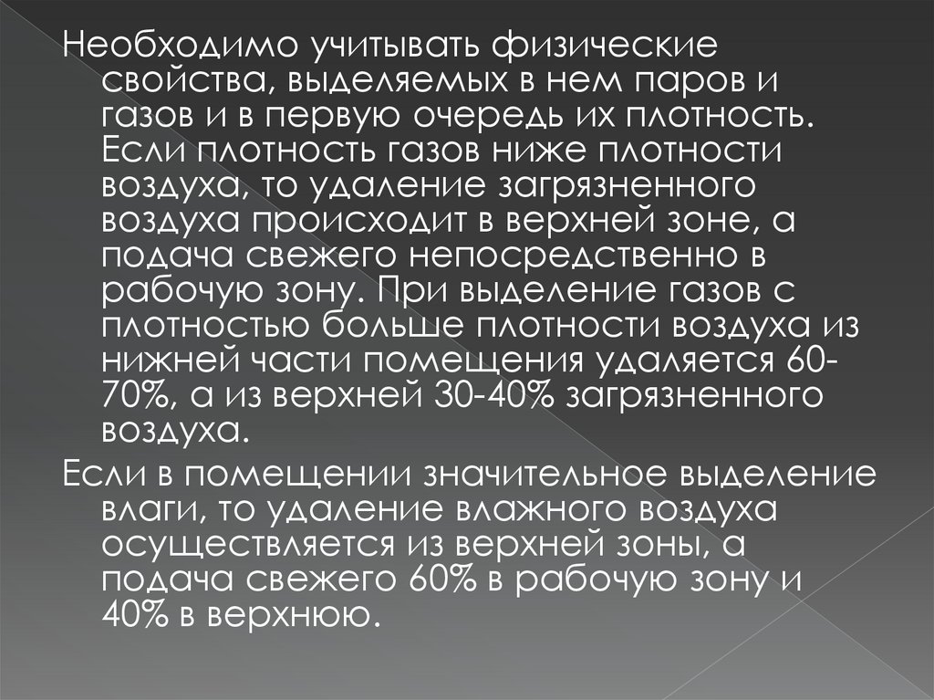 нижней части помещения удаляется 6070%, а из верхней 30-40% загрязненного