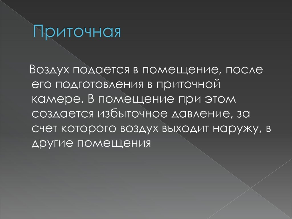 Воздух подается в помещение, послеего подготовления в приточной