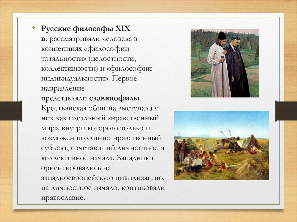 • Русские философы XIXв. рассматривали человека в