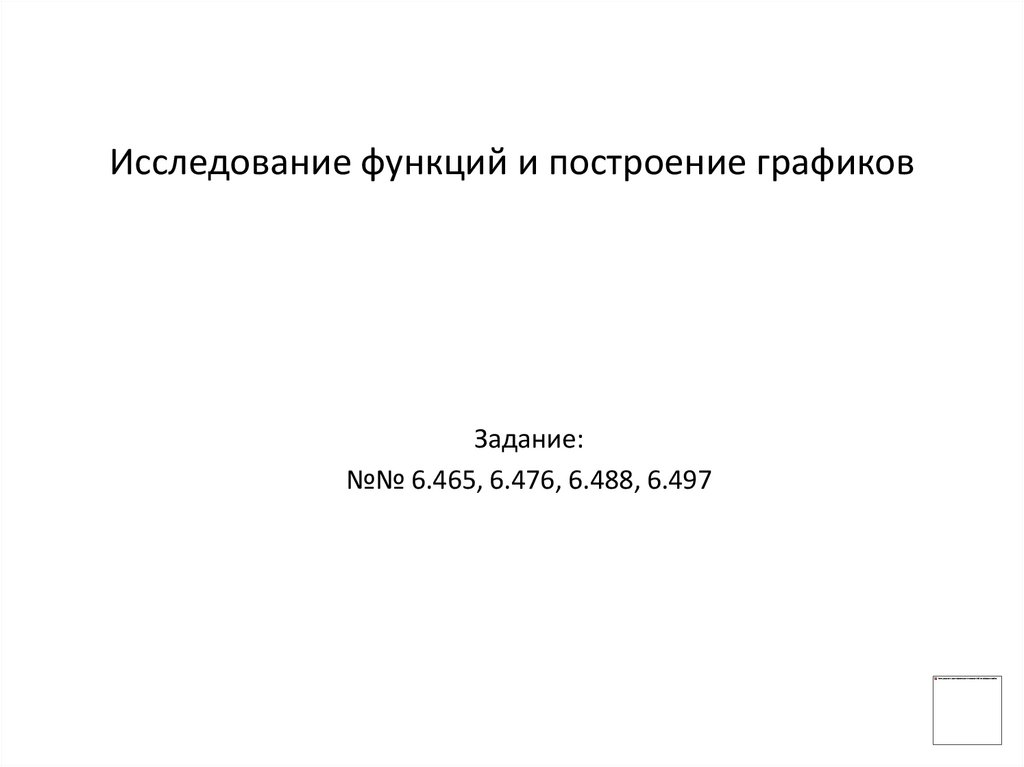 Исследование функции и построение графиковПри построении графика функции целесообразно пользоваться следующей схемой: