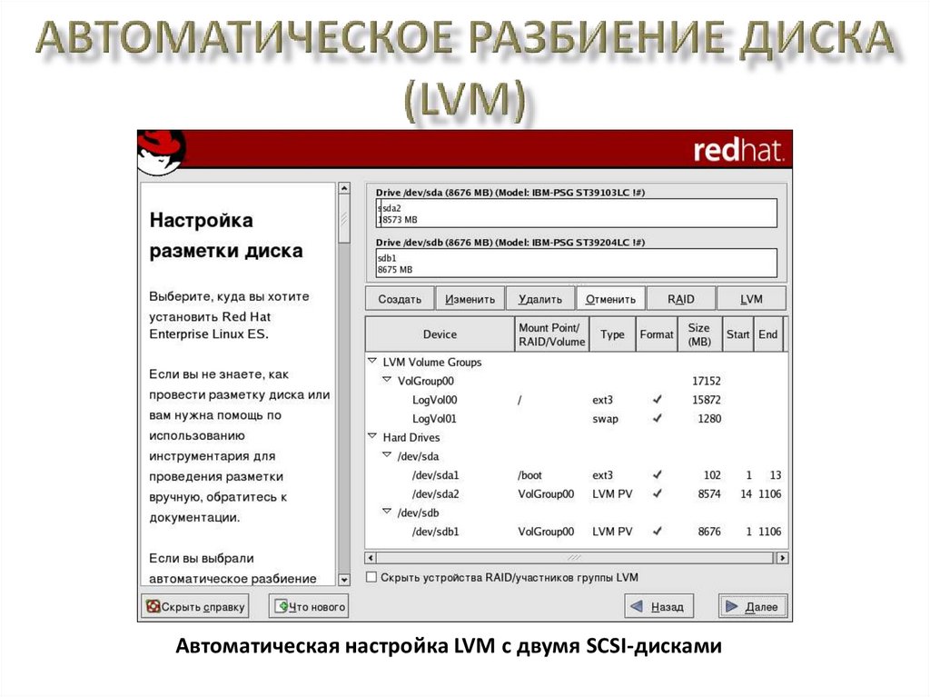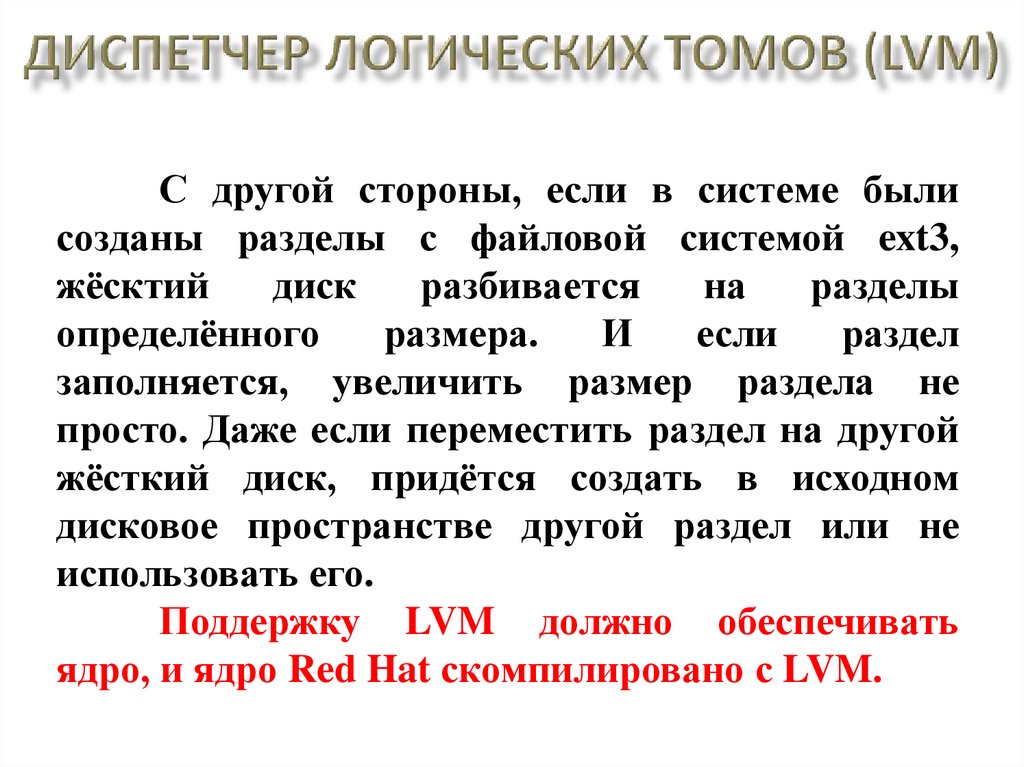 ядро, и ядро Red Hat скомпилировано с LVM.