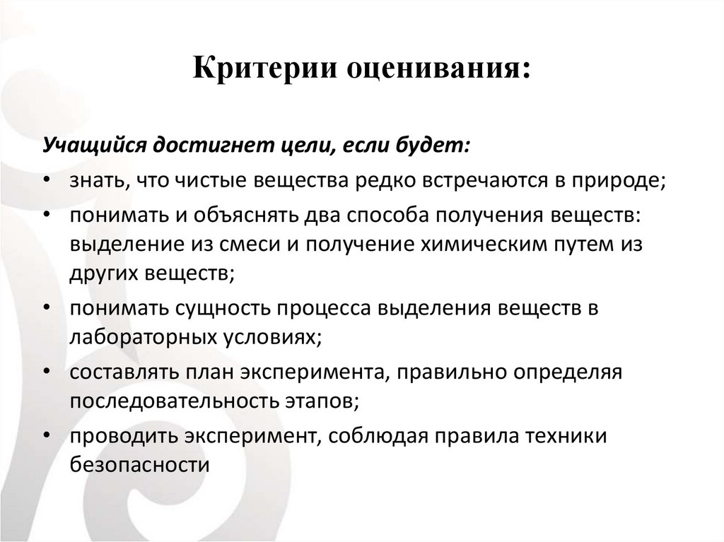 Критерии оценивания:Учащийся достигнет цели, если будет: