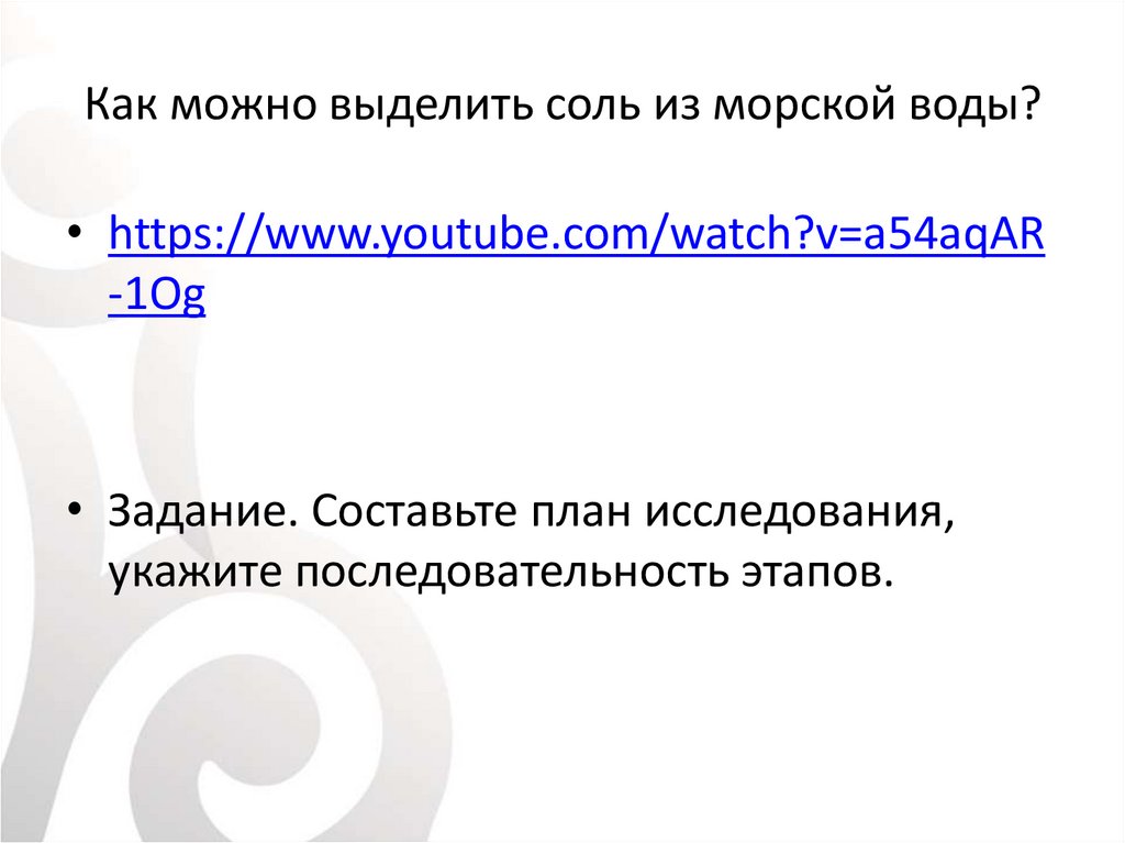 Как можно выделить соль из морской воды?• https://www.youtube.com/watch?v=a54aqAR