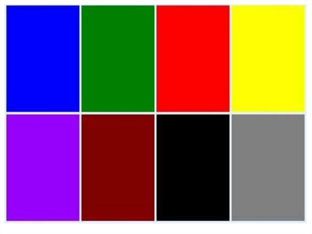 Контрастные по этим измерениям пары: синий и красный, желтый и зеленый лишь