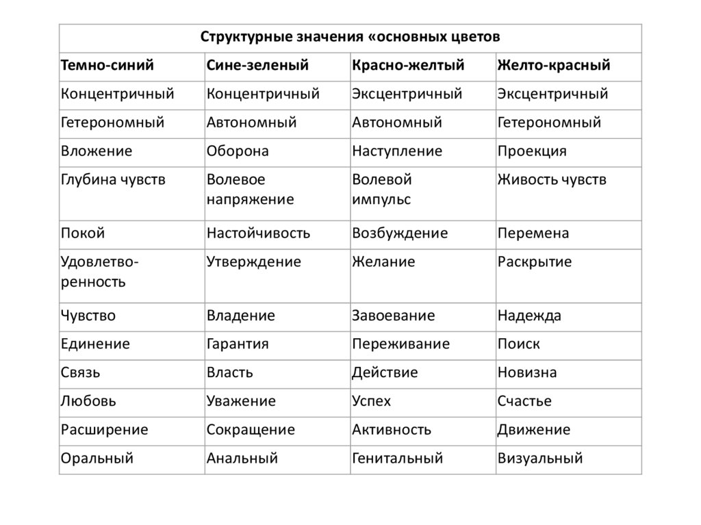 влияние. По М. Люшеру, это качество присуще красному и зеленому, в противоположность