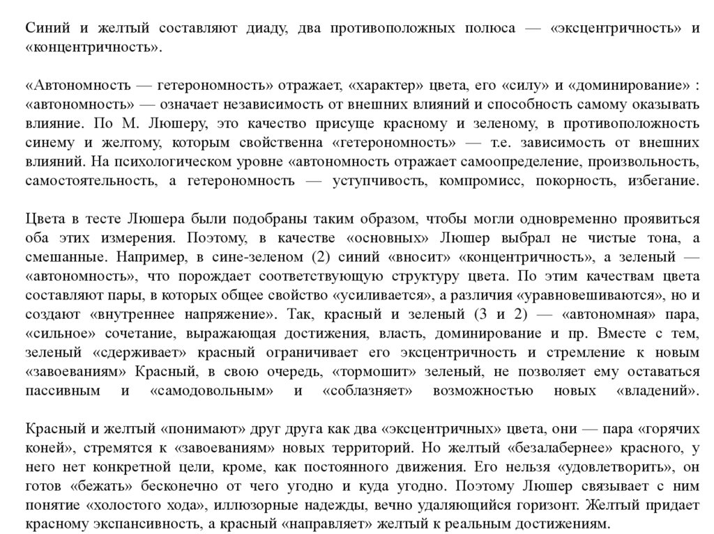 синему и желтому, которым свойственна «гетерономность» — т.е. зависимость от внешних