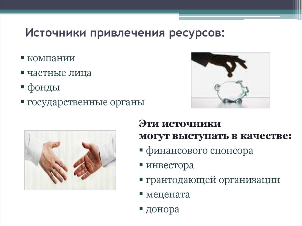 Источники привлечения ресурсов:компании
