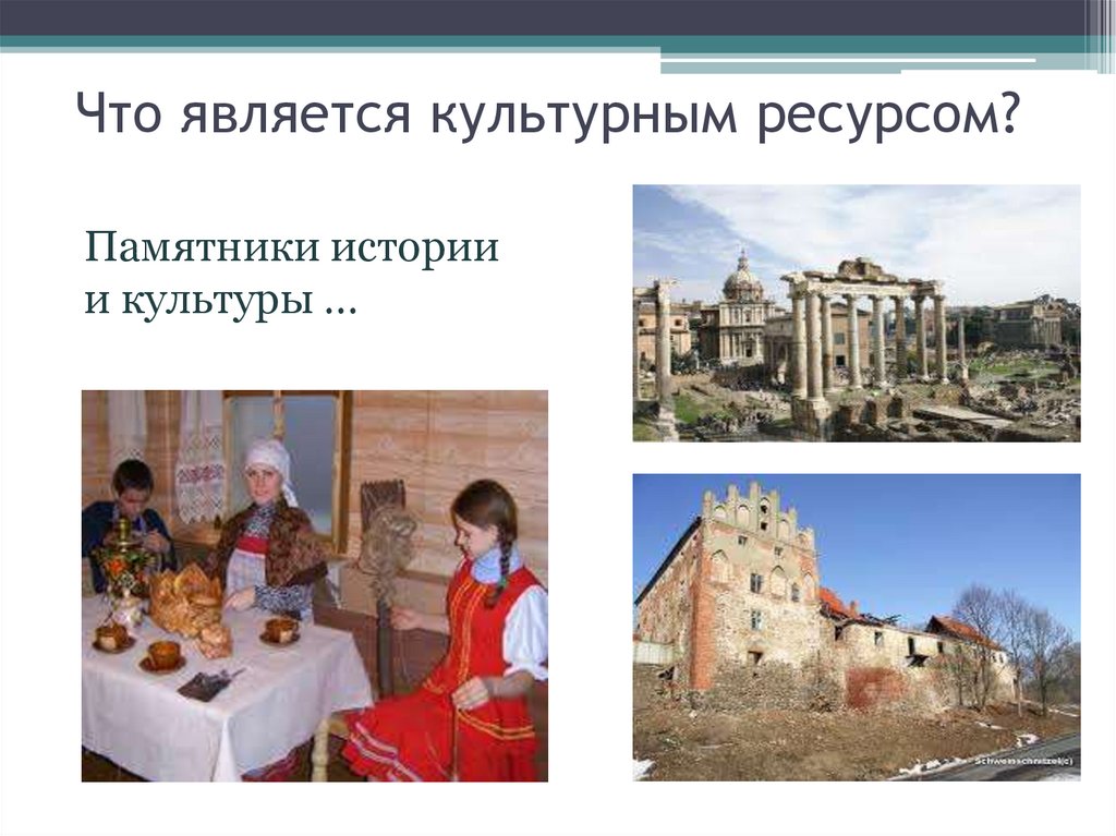 Что является культурным ресурсом?Памятники истории