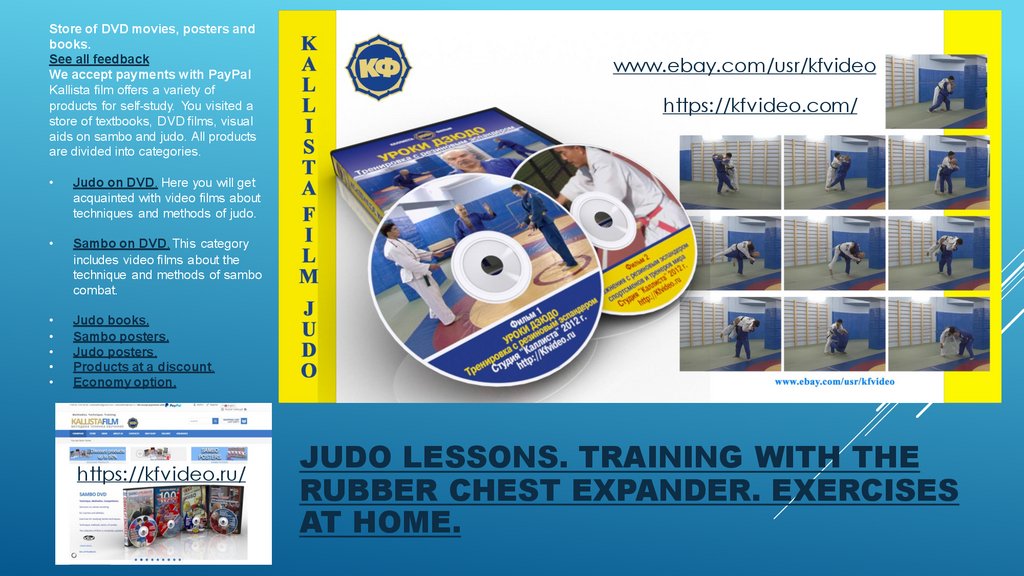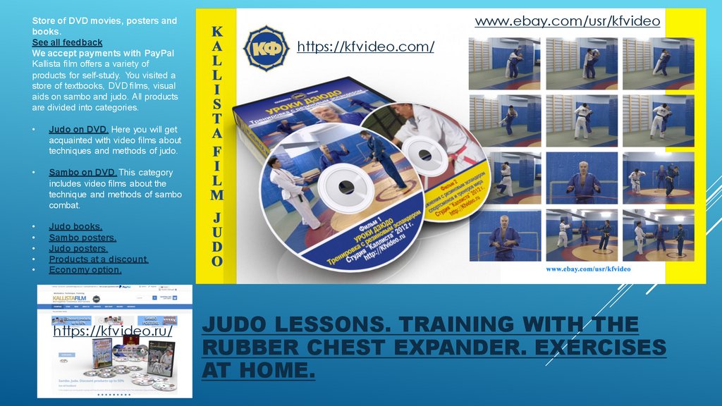 Store of DVD movies, posters and books.JUDO LESSONS. TRAINING WITH
