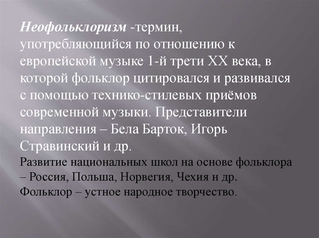 Неофольклоризм. Развитие национальных школ на основе фольклора