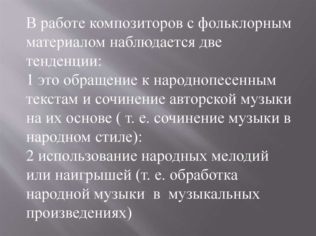В работе композиторов с фольклорнымматериалом наблюдается две