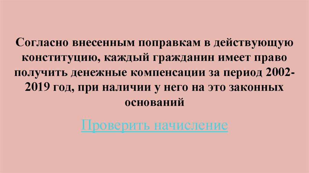 1. Согласно внесенным поправкам в действующую конституцию, каждый гражданин имеет право получить денежные компенсации за период