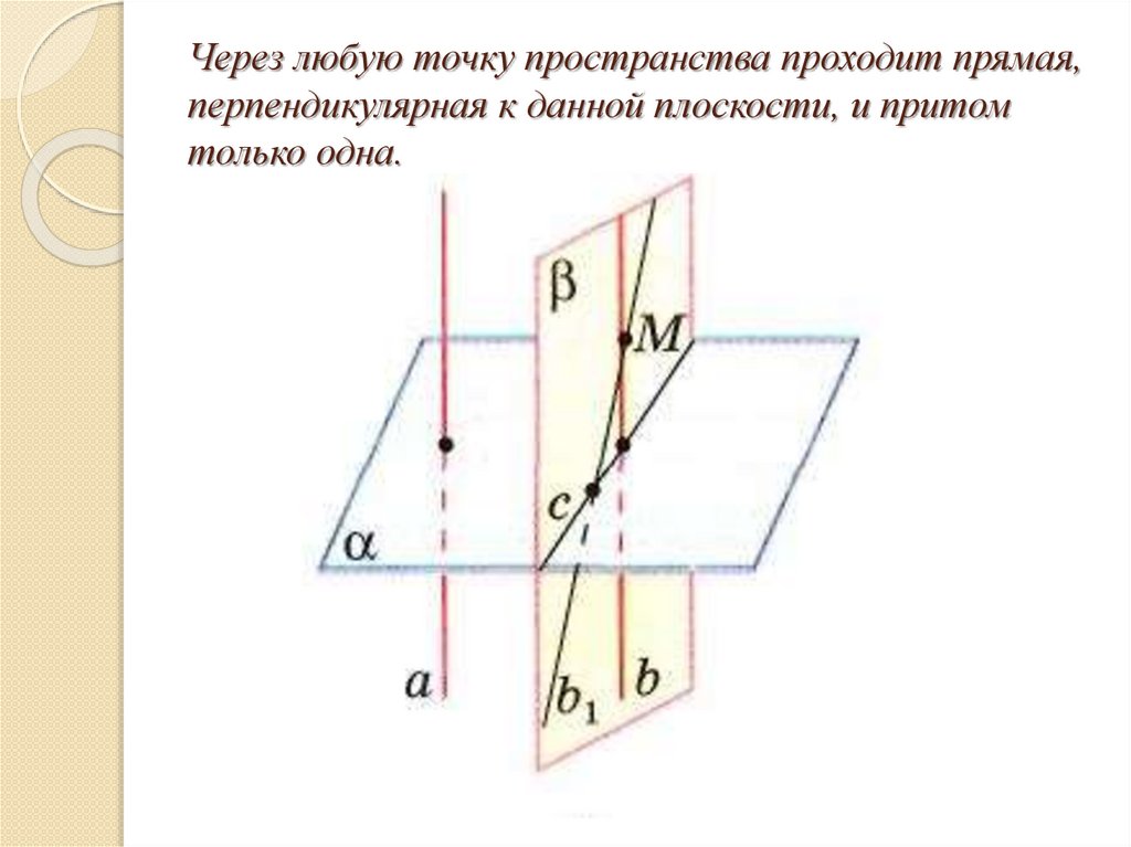 Через любую точку пространства проходит прямая,перпендикулярная к данной плоскости, и притом