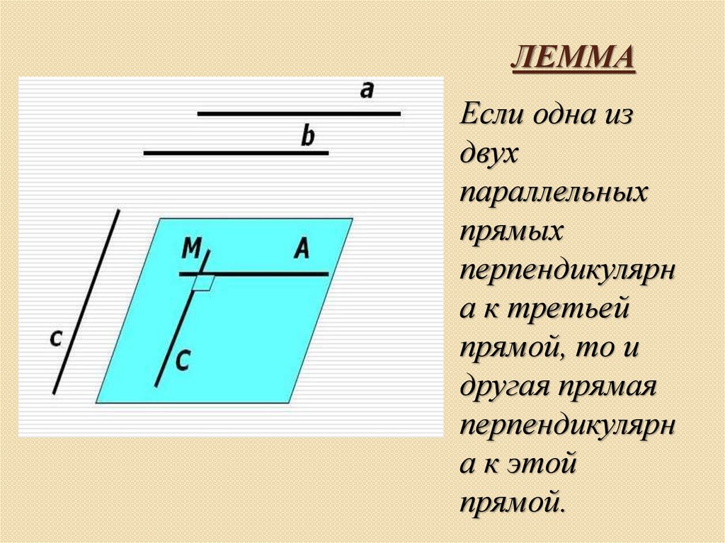 ТЕОРЕМАЕсли одна из двух параллельных прямых перпендикулярна к