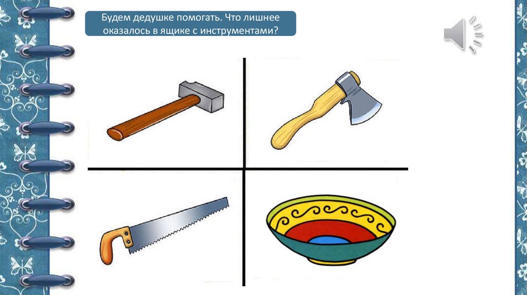 Будем дедушке помогать. Что лишнееоказалось в ящике с инструментами?