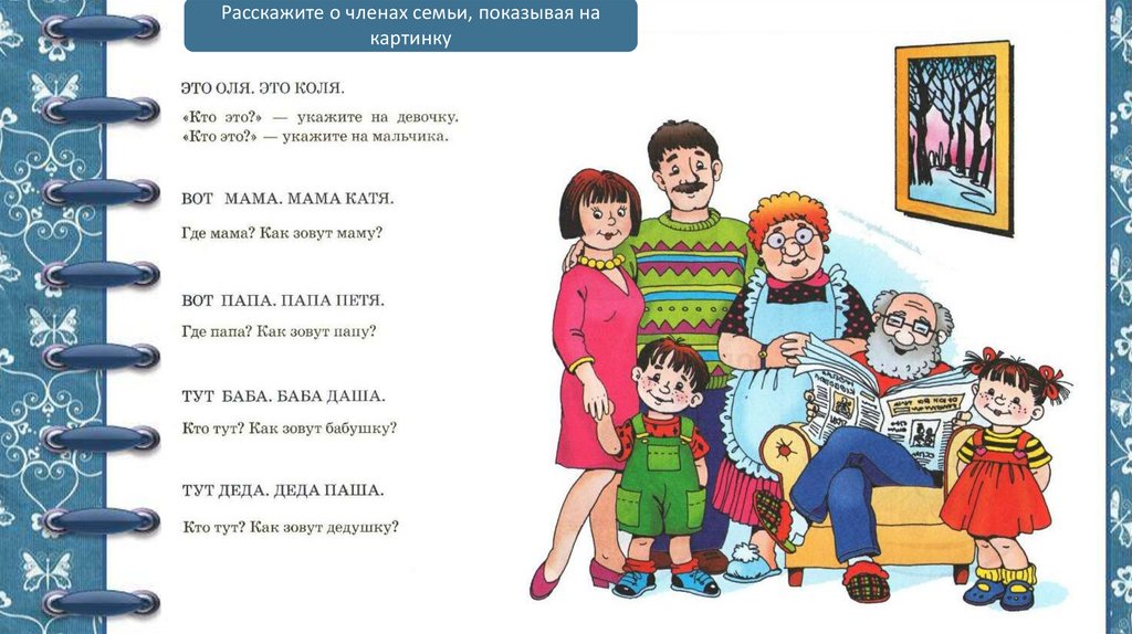 Расскажите о членах семьи, показывая накартинку