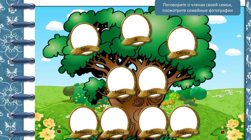 Поговорите о членах своей семьи,посмотрите семейные фотографии
