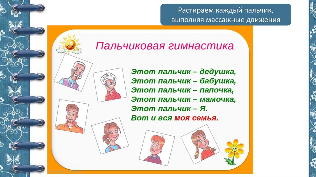 Растираем каждый пальчик,выполняя массажные движения