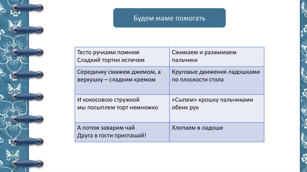 Будем маме помогатьТесто ручками помнем