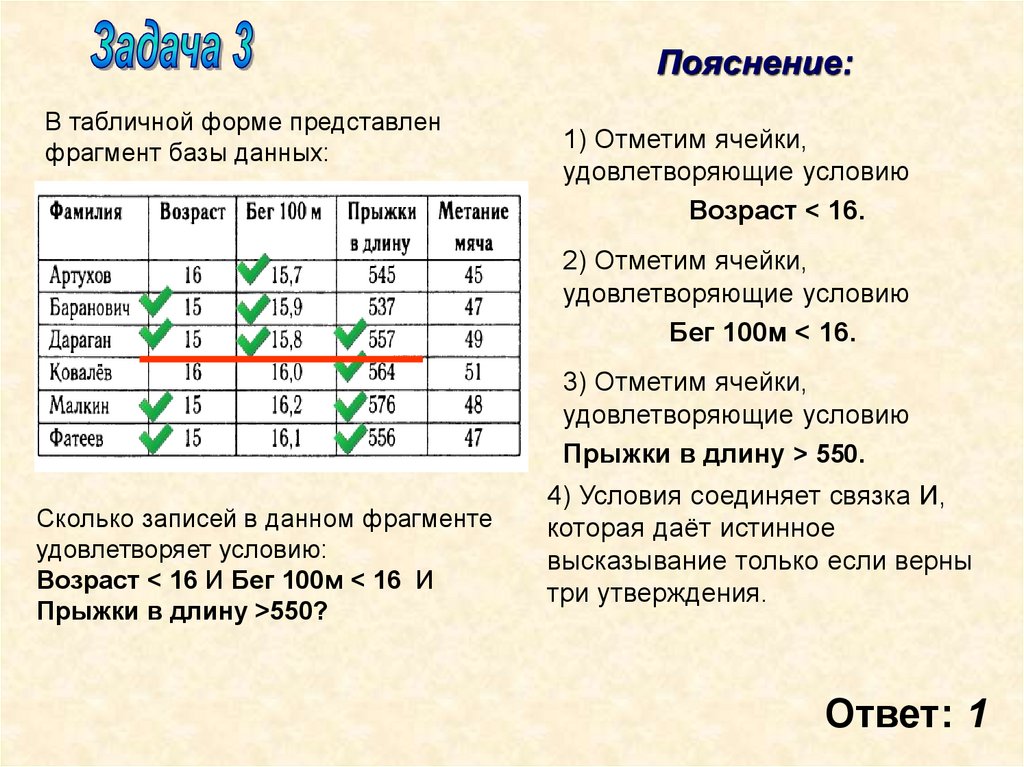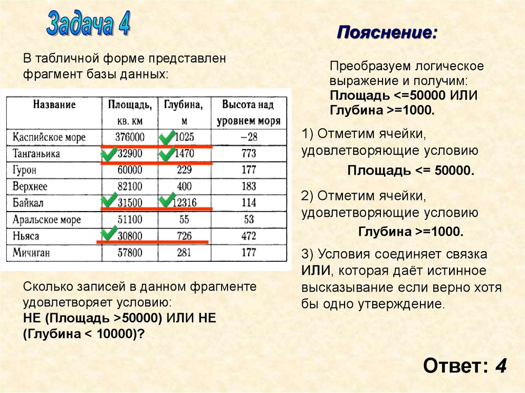 Осуществление поиска в готовой базе данных. Задачи с пояснениями решений