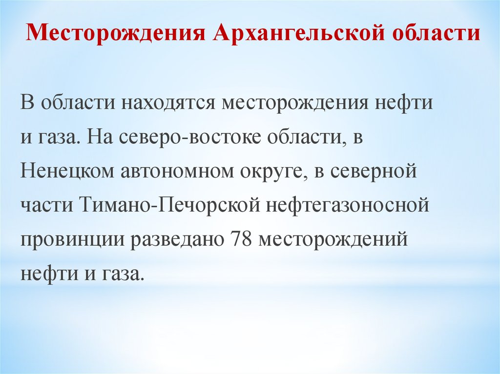 Месторождения Архангельской областиВ области находятся месторождения нефти