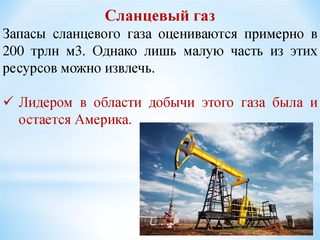 Сланцевый газЗапасы сланцевого газа оцениваются примерно в