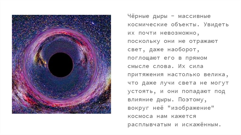 Чёрные дыры - массивныекосмические объекты. Увидеть