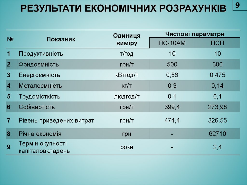 РЕЗУЛЬТАТИ ЕКОНОМІЧНИХ РОЗРАХУНКІВ№