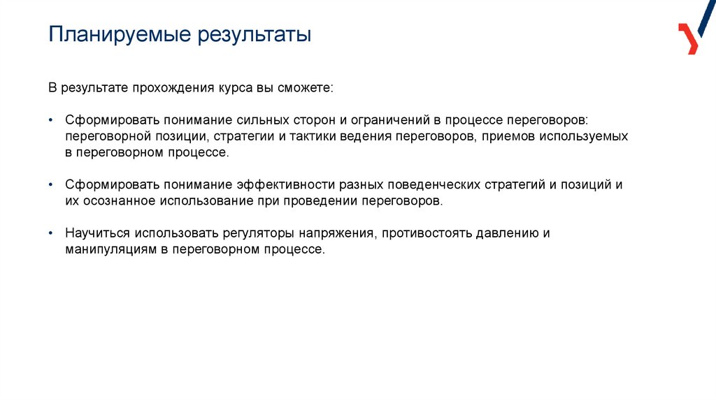 • Сформировать понимание сильных сторон и ограничений в процессе переговоров: