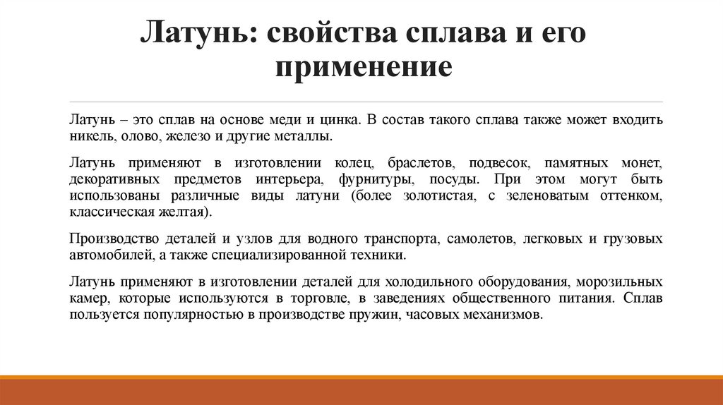 Латунь: свойства сплава и егоприменение
