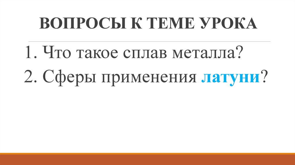 ВОПРОСЫ К ТЕМЕ УРОКА1. Что такое сплав металла?