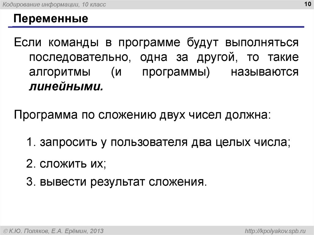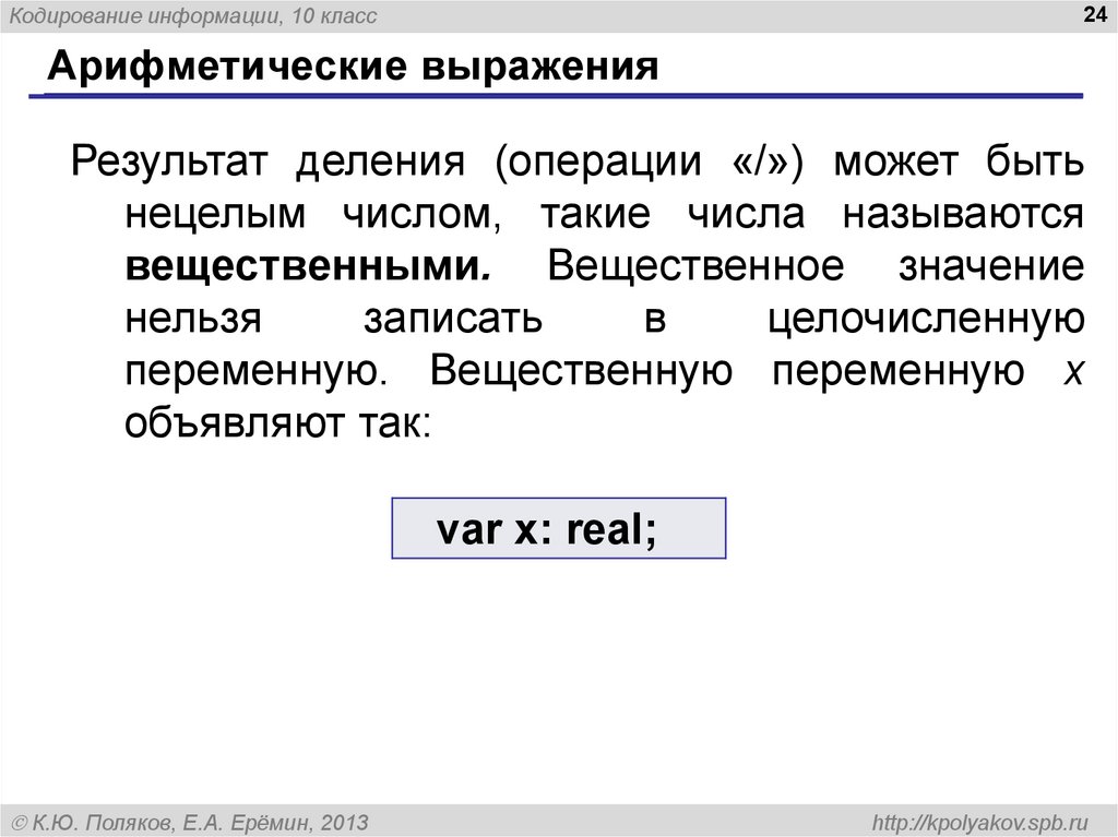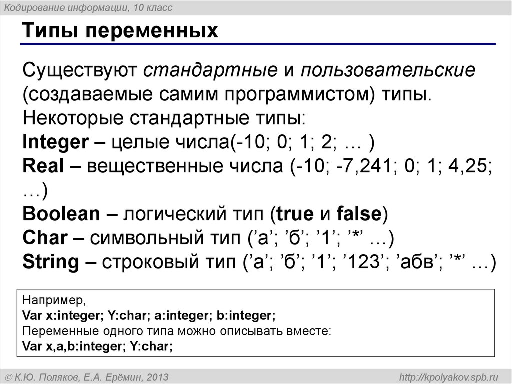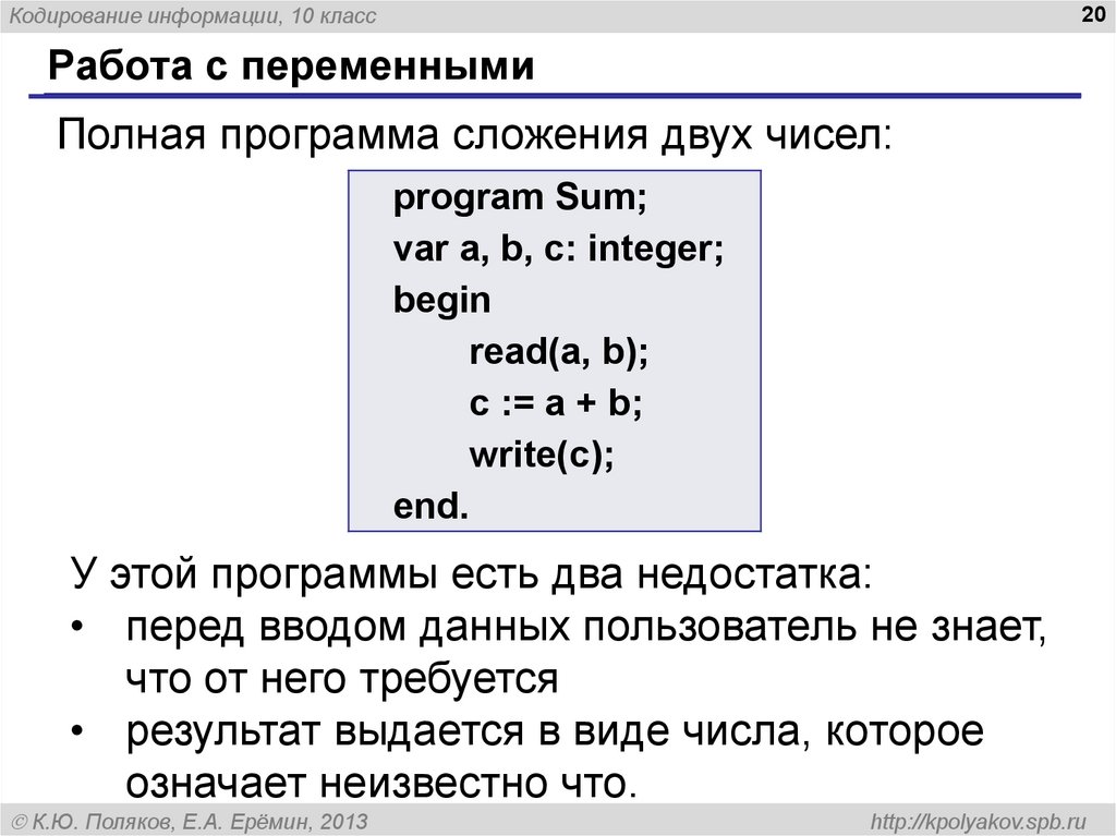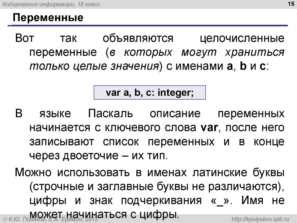 4. Write(’a,’, b, ’,’, c) – вывод на экран буквы а и