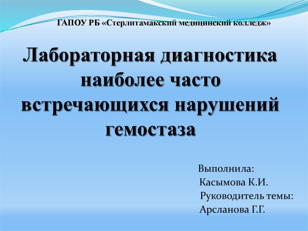 Лабораторная диагностика наиболее часто встречающихся нарушений гемостаза