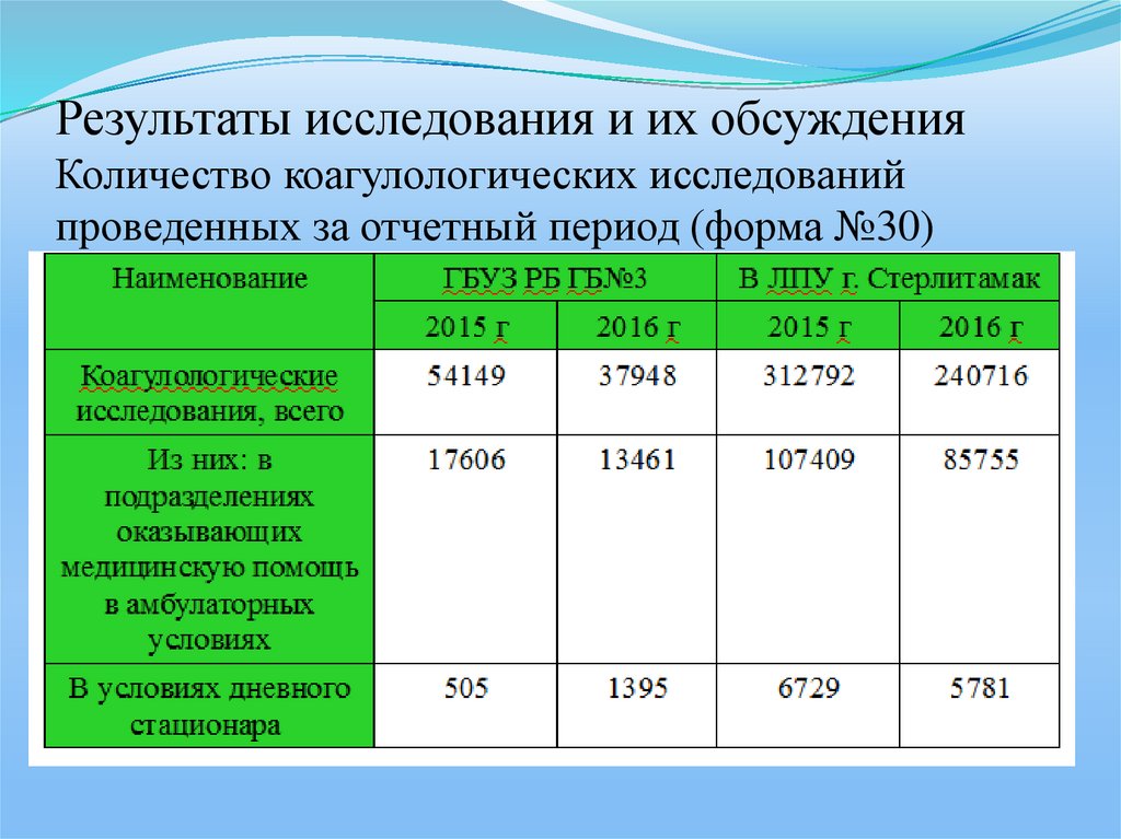Результаты исследования и их обсужденияКоличество коагулологических исследований