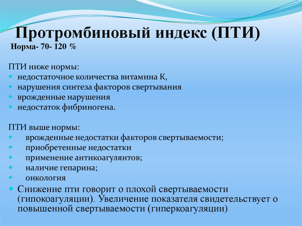 Снижение пти говорит о плохой свертываемости
