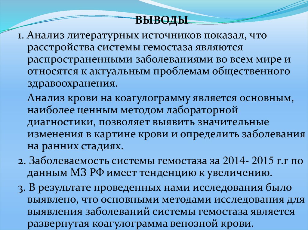 ВЫВОДЫ1. Анализ литературных источников показал, что
