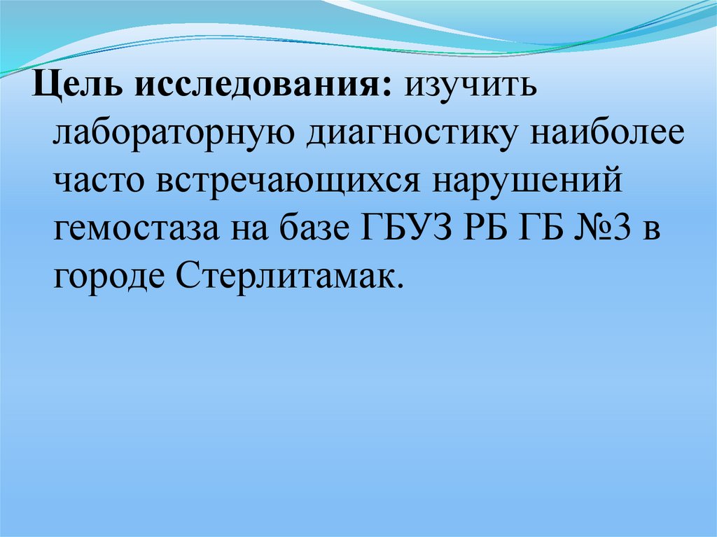 Цель исследования: изучитьлабораторную диагностику наиболее