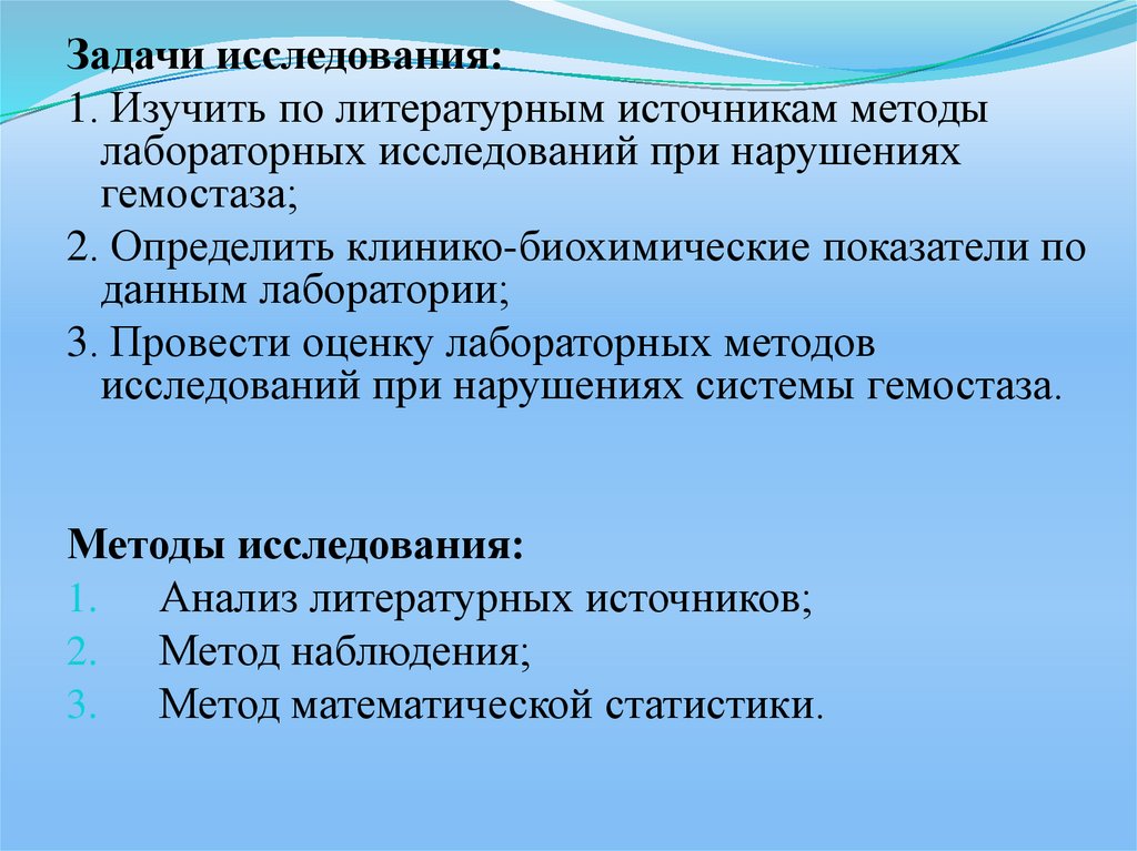 Задачи исследования:1. Изучить по литературным источникам методы