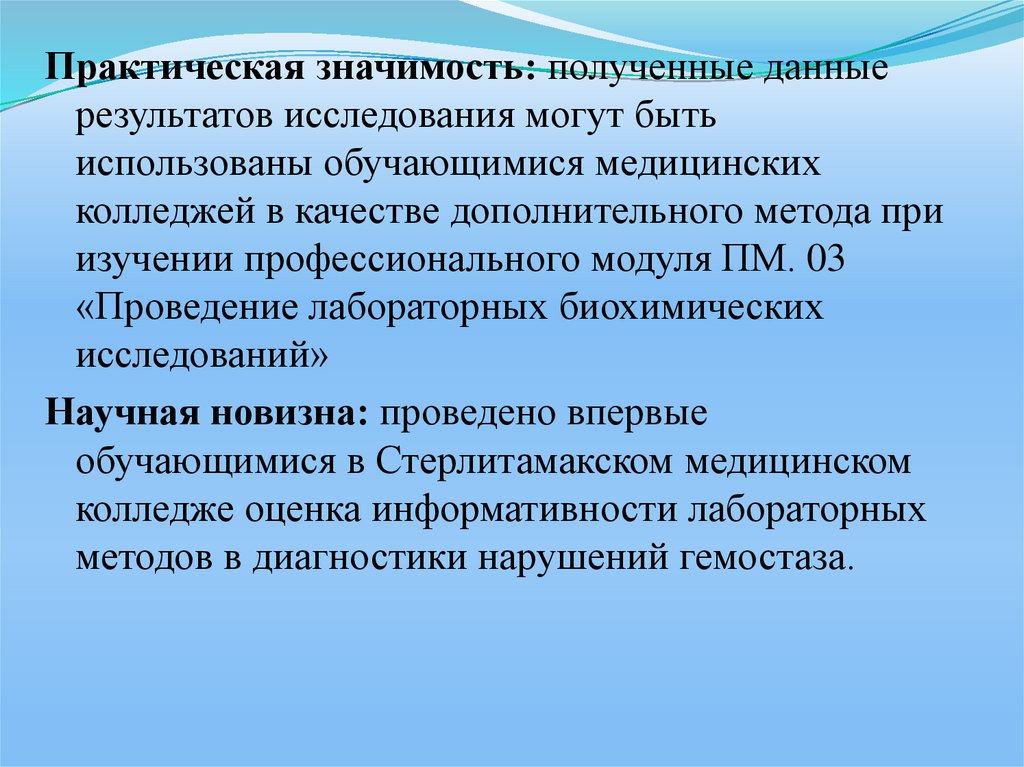 Практическая значимость: полученные данныерезультатов исследования могут быть