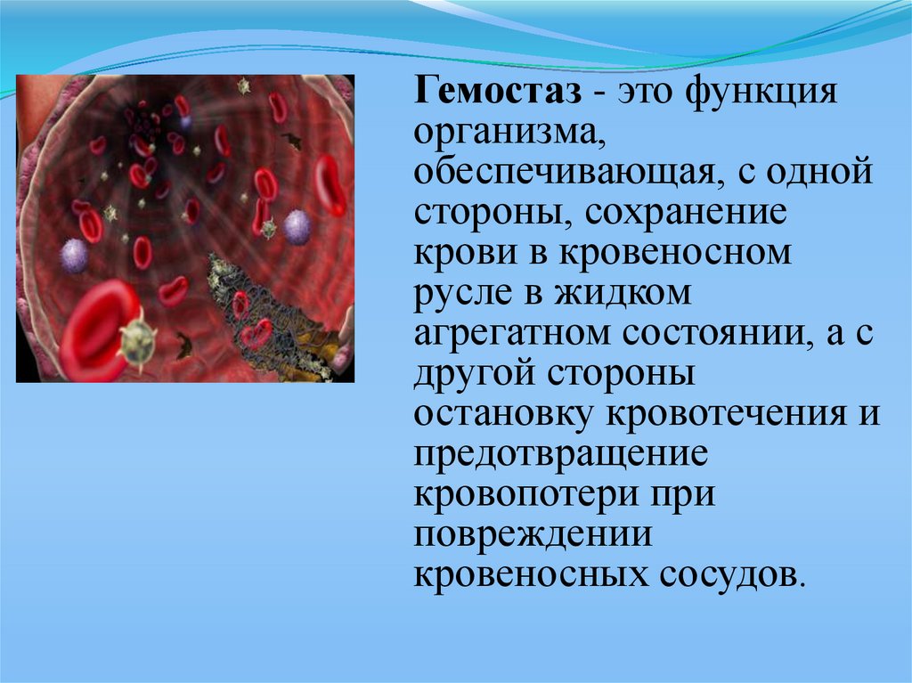 Гемостаз - это функцияорганизма,