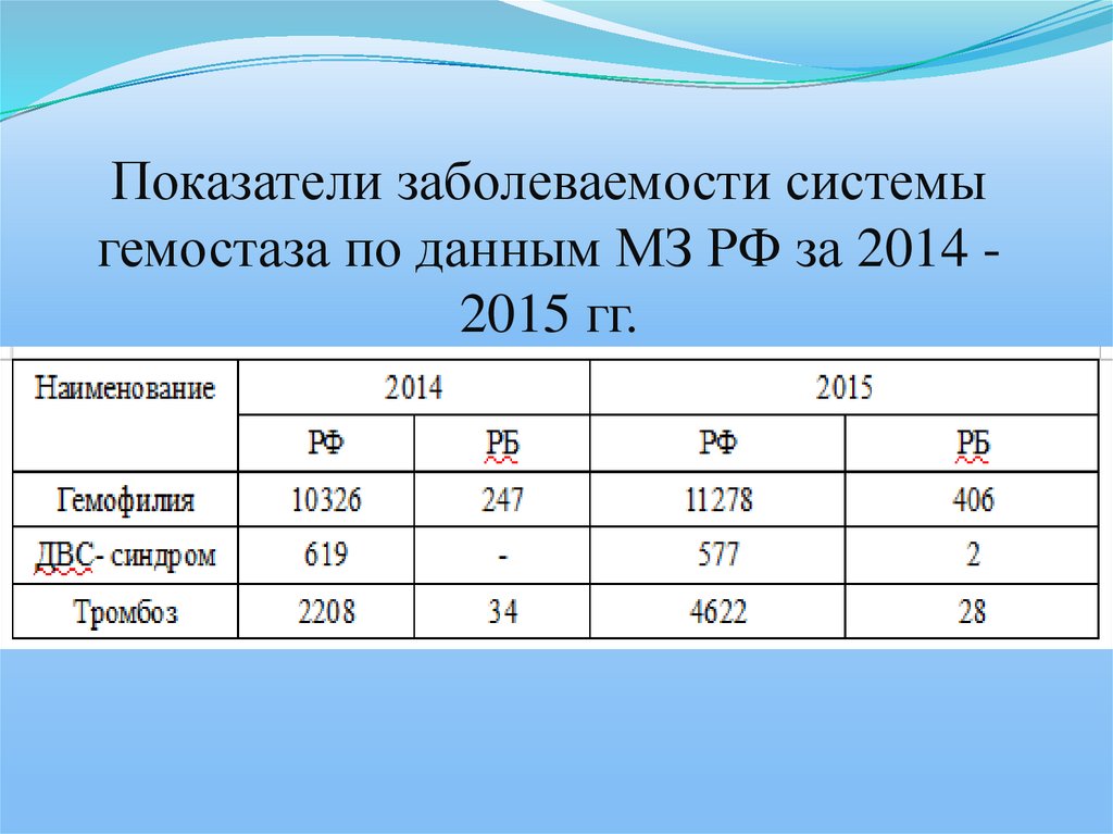 Показатели заболеваемости системыгемостаза по данным МЗ РФ за 2014 2015 гг.