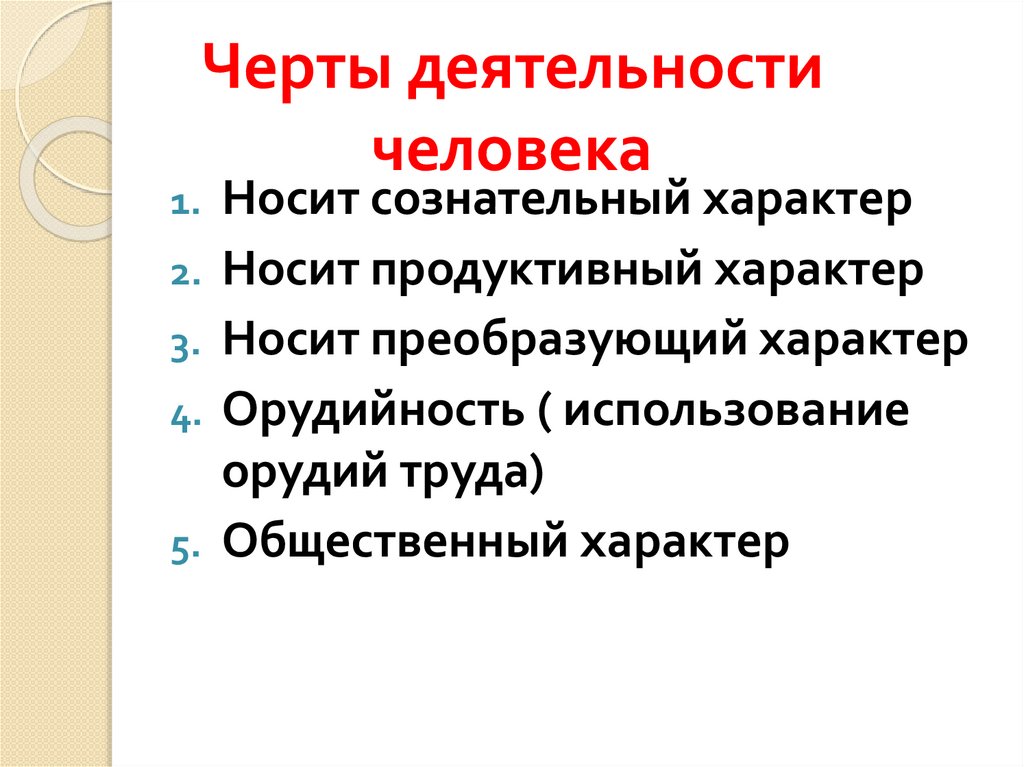 Черты деятельностичеловека
