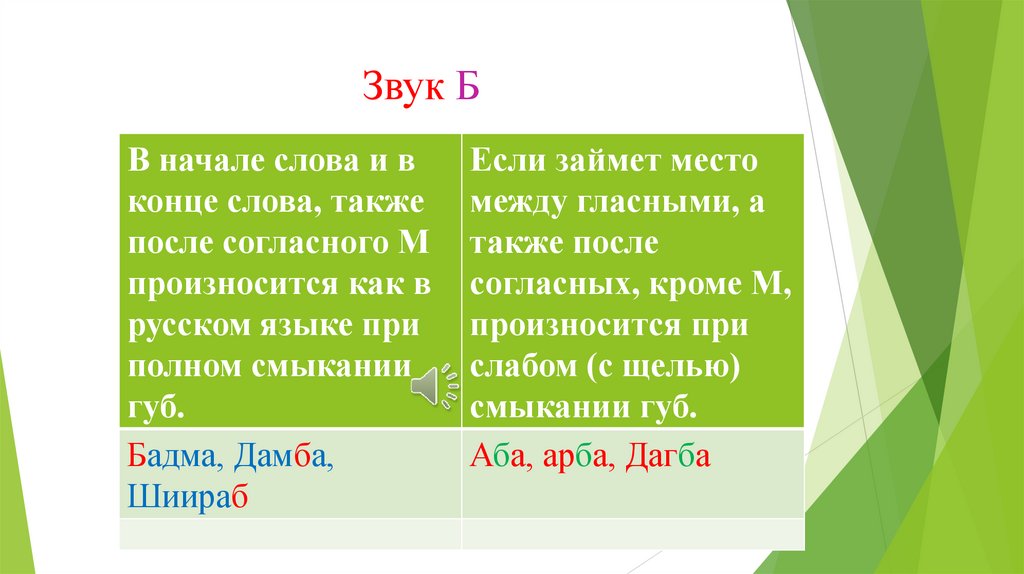 Звук БВ начале слова и в