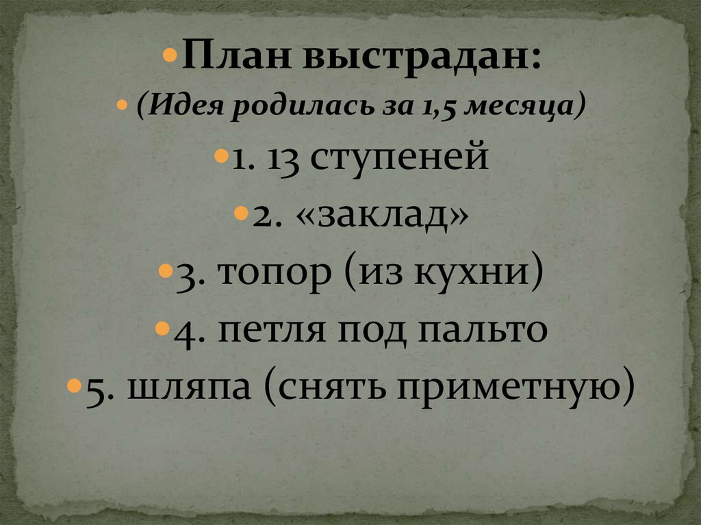 План выстрадан:(Идея родилась за 1,5 месяца)