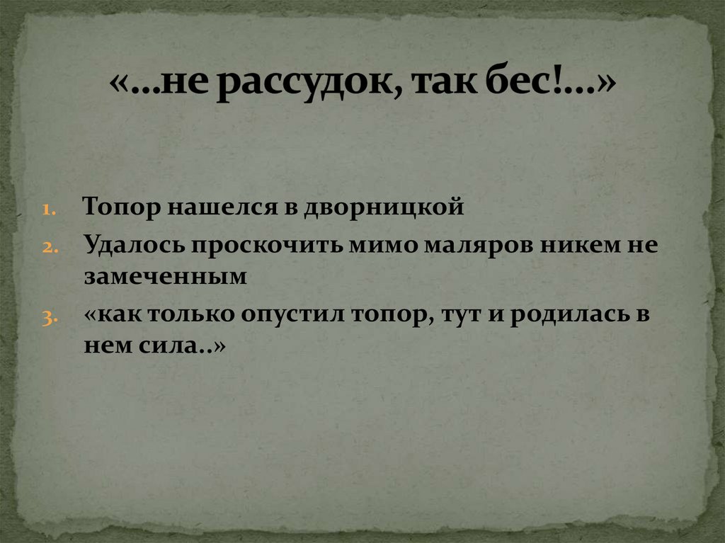 3. топор занести не хватало сил (чуть ли не