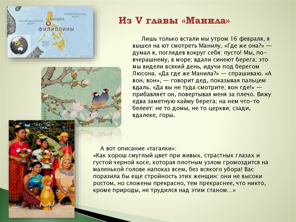 Из V главы «Манила»Лишь только встали мы утром 16 февраля, я