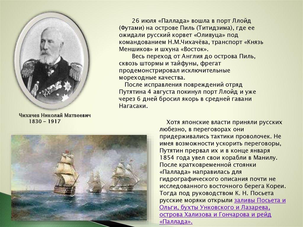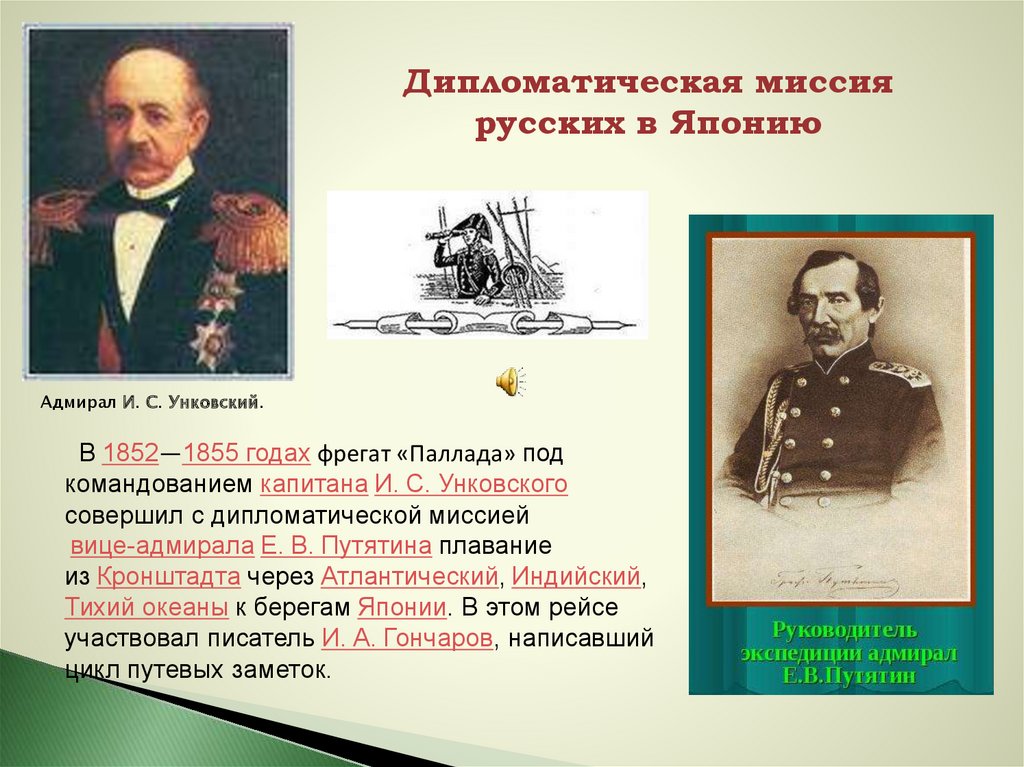 фрегате «Паллада» — в качестве секретаря начальника экспедиции вице-адмирала Путятина.