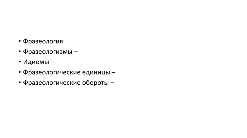 • Фразеология• Фразеологизмы –