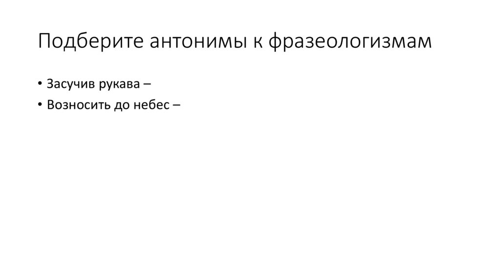 Подберите антонимы к фразеологизмам• Засучив рукава –